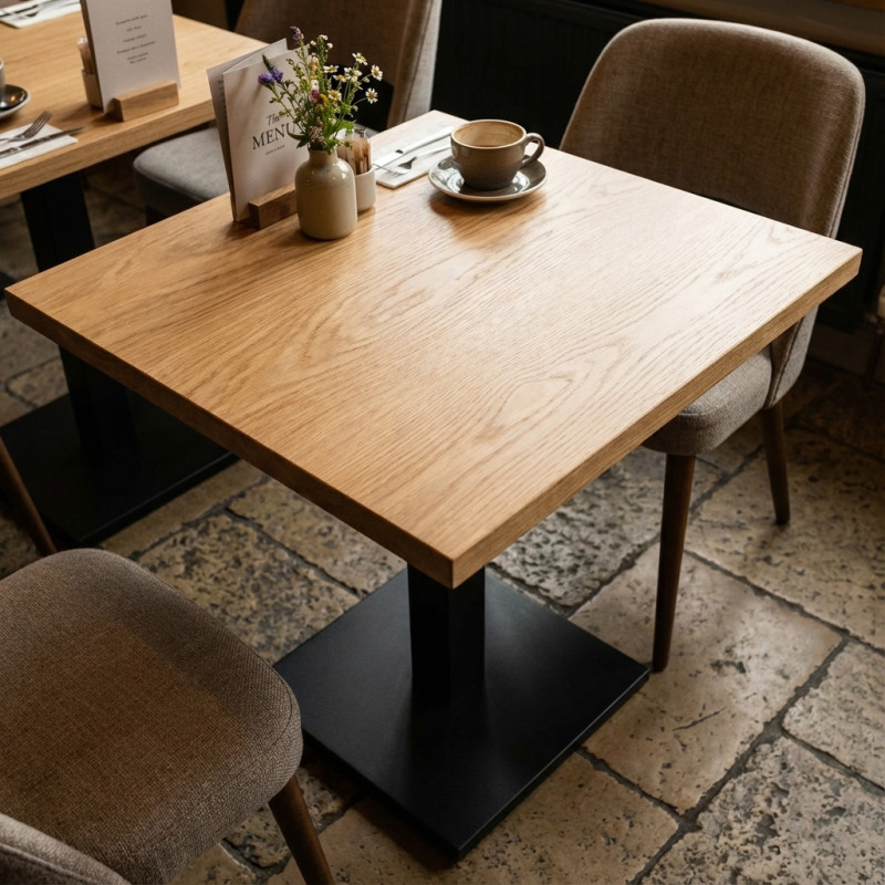 Квадратные, круглые, прямоугольные столешницы. Шпон дуба - это экологичный, устойчивый к развитию различных бактерий и микроорганизмов, гниению, образованию грибка и плесени материал.